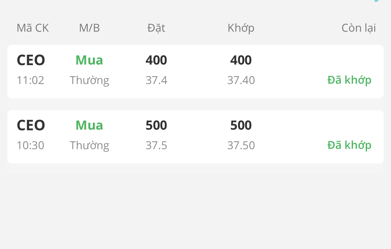 Sáng nay em mua thêm được 400 ceo giá 38.