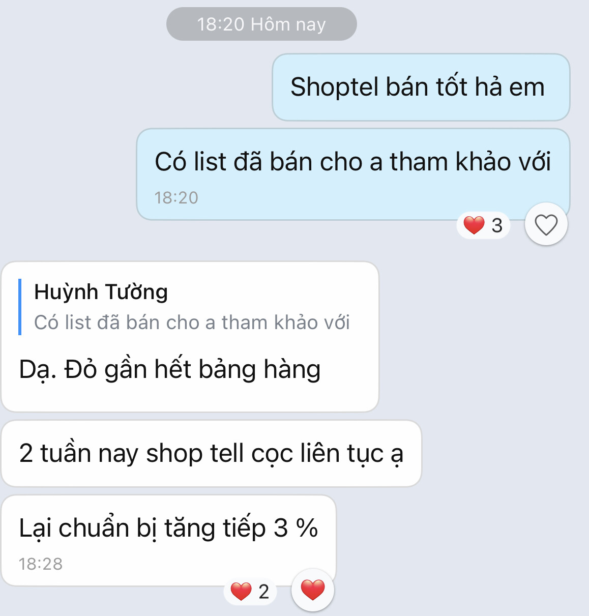 Cập nhật bán hàng Shoptel sở hữu lâu dài nhé ae, bán tốt và lại chuẩn bị tăng giá 3%, tăng giá bán là không tăng đầu vào chỉ tăng lợi nhuận thôi đấy