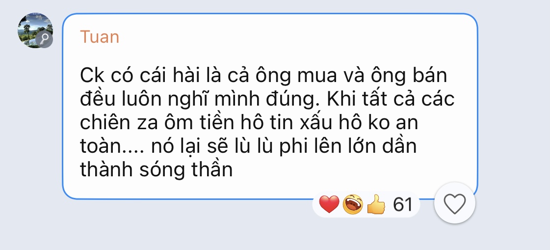 Chắc phải chờ kết phiên ko quay xe quay cũng mới lên tiếng chia vui bác à kaka