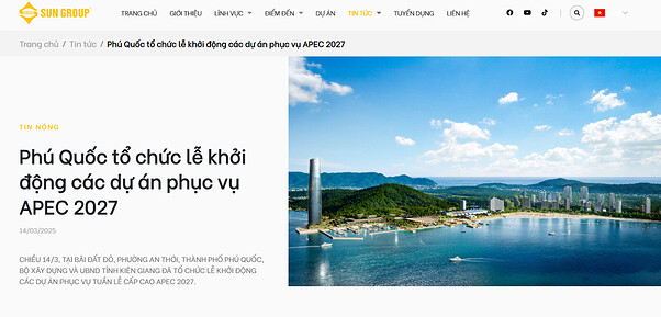 - Khu tổ hợp đa chức năng APEC (dự án lấn biển 57 ha) để phục vụ Hội nghị thượng đỉnh APEC 2027 ở Phú Quốc.