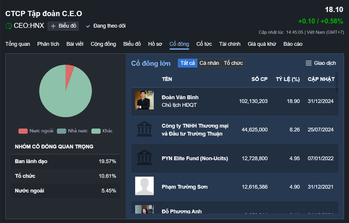- Cơ cấu cổ đông của CEO không cô đặc lắm nhưng dàn lãnh đạo CEO nắm giữ 20% doanh nghiệp cũng là điểm tốt. Ngoài ra 10% nắm giữ đến các quỹ nước ngoài và tổ chức khác.