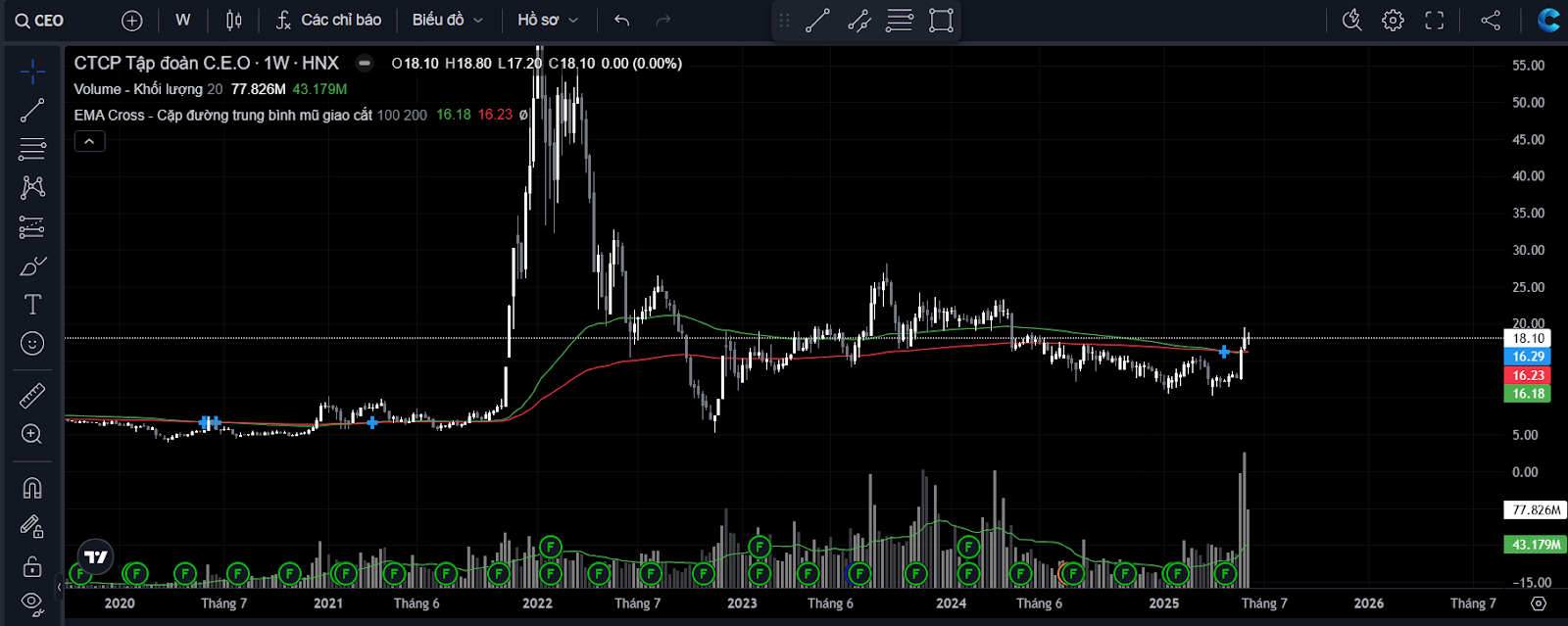 - CEO khung 1W đang có hiện tượng nổ volume, dòng tiền rất lớn và trong trạng thái tái tích luỹ quanh MA100 khung tuần chờ vượt MA200 khung tuần. Chờ backtest giá 17-18 nhà đầu tư có thể mua vào.