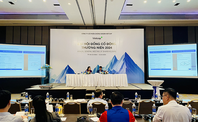 Chiều 2/4, CTCP Chứng khoán Vietcap (Mã: VCI) tổ chức họp ĐHĐCĐ thường niên 2024 để thảo luận các vấn đề về hoạt động kinh doanh, phương án phát hành cổ phiếu tăng vốn điều lệ, bầu bổ sung thành viên hội đồng quản trị (HĐQT)...