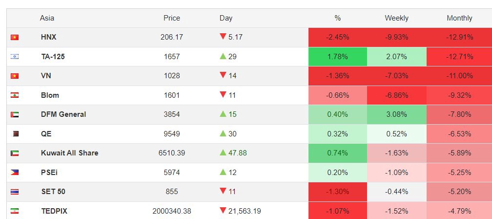 Hiện tại chứng khoán Việt Nam vẫn tiếp tục duy trì vị trí giảm điểm thuộc top đầu chứng khoán thế giới với việc gần ngang bằng với quốc gia đang có chiến tranh là isarel