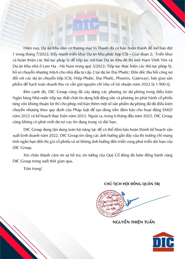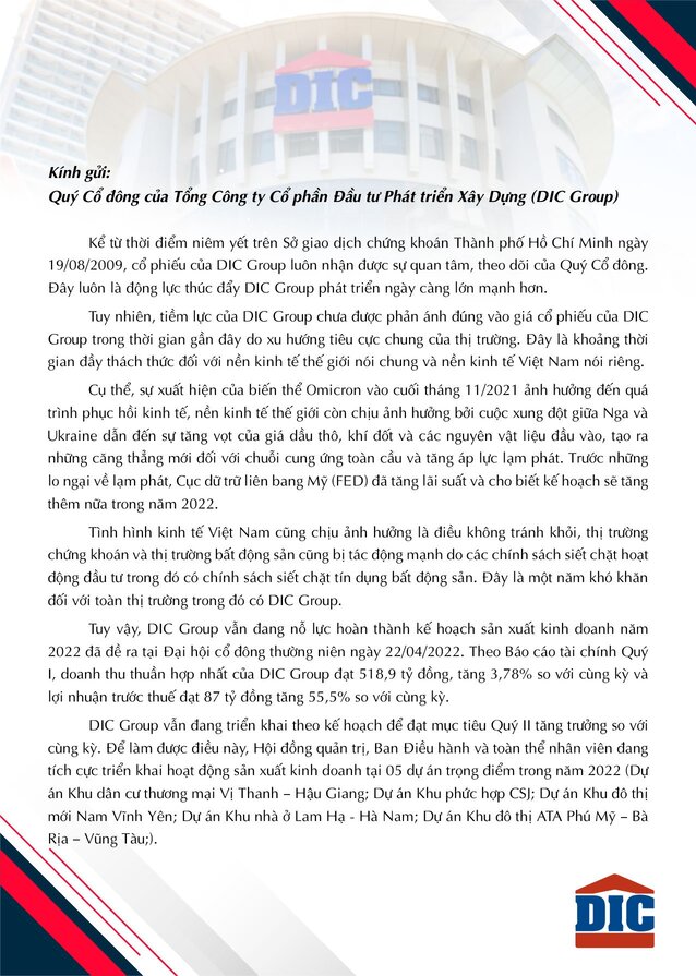 Chủ tịch ra mặt viết thư động viên quý cổ động giữa xúc tình hình căng thẳng trấn an tinh thần vậy quá tốt. BLĐ luôn quan tâm đến cổ đông thế còn gì cty quá tốt