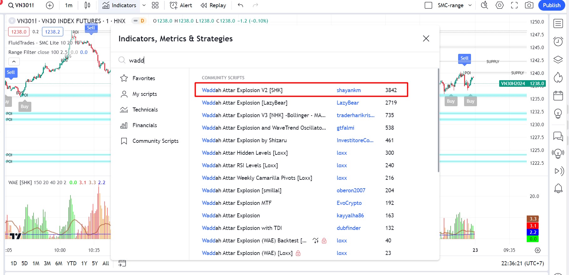 Chọn ““ Waddah Attar Explosion V2 SHK” để cài đặt chỉ báo.