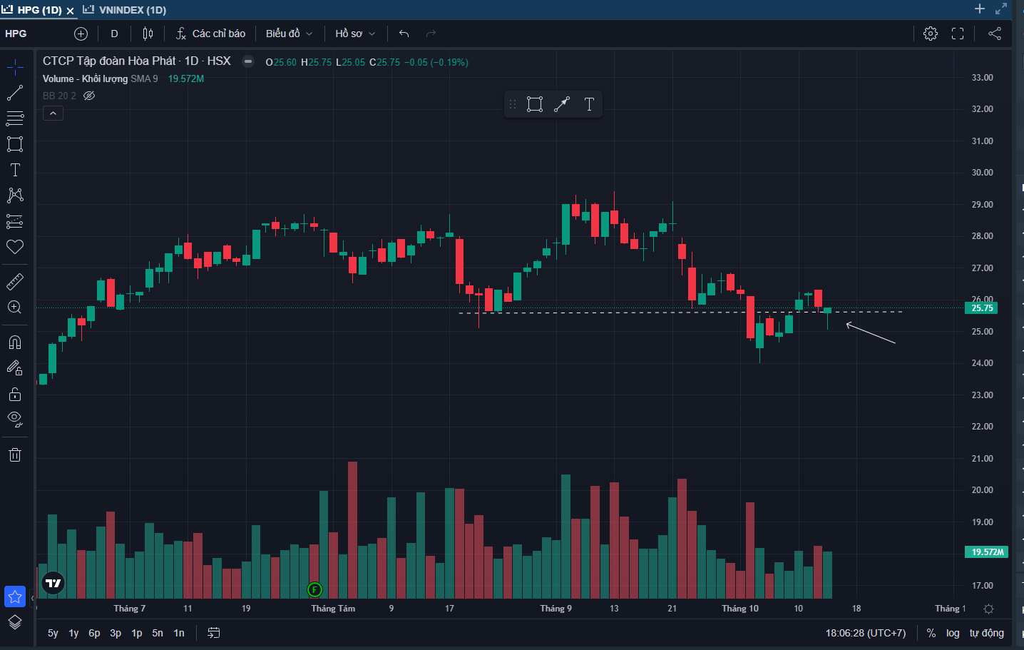 HPG đang ở vị trí nhạy cảm . Cái nến rút chân kiểu này trông bình thường hoặc khá tốt nhưng theo tôi nên chậm lại cái đã. Cái gì không chắc nên bỏ qua. Tìm tín hiệu mạnh hơn. Nhiều lần rút chân bulltrap