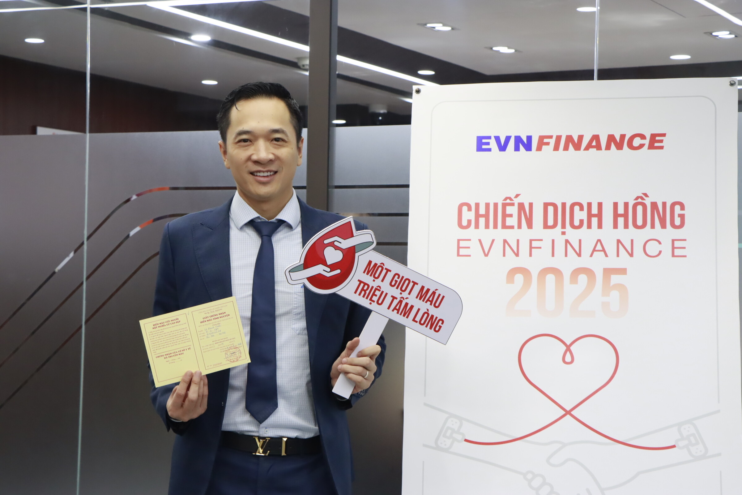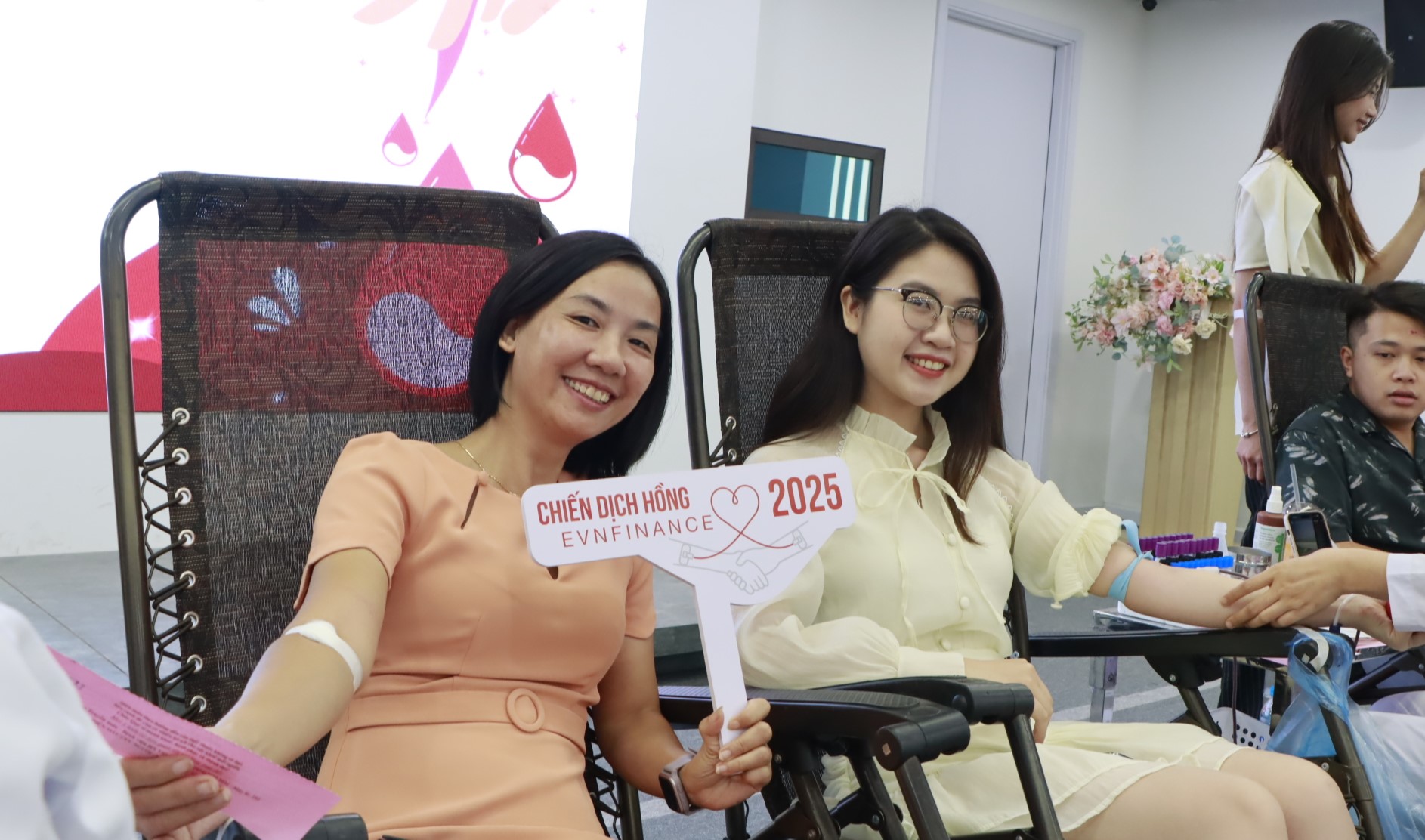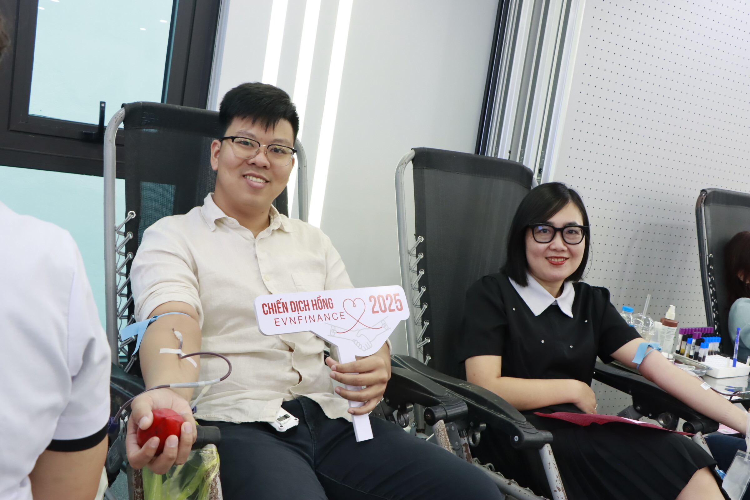 Ngày hội hiến máu năm nay tiếp tục nhận được sự ủng hộ và tham gia trực tiếp của anh Lê Mạnh Linh – Phó Chủ tịch HĐQT, anh Mai Danh Hiền – Thành viên HĐQT, Tổng Giám đốc và anh Lê Long Giang – Trưởng Ban Kiểm soát, cùng các lãnh đạo phòng, ban, chi nhánh và đông đảo CBNV EVNFinance tại Hà Nội. Sự hiện diện và hưởng ứng tích cực của Ban Lãnh đạo đã tiếp thêm động lực cho toàn thể CBNV, đặc biệt là những thành viên lần đầu tham gia hiến máu, góp phần tạo nên bầu không khí sôi nổi và đầy ý nghĩa nhân văn.