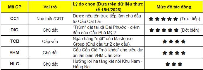 Chất xúc tác: Được nêu đích danh là Nhà đầu tư dự án Cầu Cát Lái (18.299 tỷ đồng).