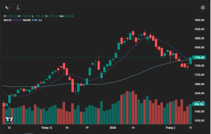 Chiến lược giao dịch 12/2/2026: VN-Index tăng mạnh kèm sự đồng thuận vượt kháng cự 1.780: