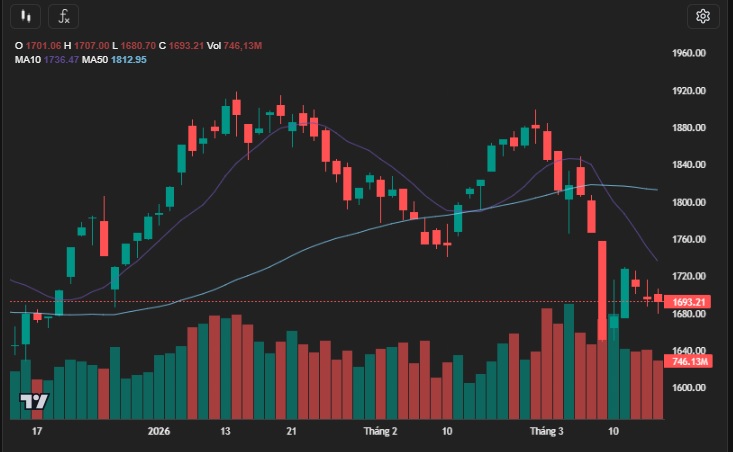 Trạng thái cung cầu và tín hiệu kỹ thuật duy trì sự phân hóa cao. Do đó, tín hiệu tạo đáy chưa được xác nhận và VN-Index sẽ tiếp tục biến động/rung lắc trong biên độ 1.650-1.730 (+/-10 điểm). Các vị thế ngắn hạn mở quanh vùng giá thấp phiên 09-10/03 có thể cân nhắc chốt lãi/giảm tỷ trọng trong trường hợp VN-Index tiếp cận cận trên biên độ (1.730 điểm). Ngược lại, cận dưới biên độ (1.650 điểm) sẽ tạo điều kiện giải ngân (tỷ trọng thăm dò) trên hai nhóm ngành có khuynh hướng hồi phục mạnh hiện tại là Ngân hàng và Bất động sản.