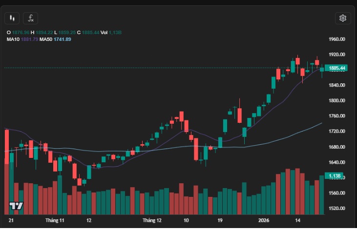 Mặc dù hoạt động mua giá thấp xuất hiện nhưng thiếu sự phân tán diện rộng trên các nhóm ngành chủ đạo (Ngân hàng). Do đó, VN-Index sẽ duy trì dao động trong biên độ 1.885-1.920 điểm trong phiên 22/01. Trong thời gian tới, nếu chỉ số đóng cửa vi phạm cận dưới 1.885 điểm, một nhịp điều chỉnh giảm sẽ xuất hiện với mục tiêu là khu vực 1.830-1.845 điểm. Ngược lại, kịch bản khả quan với xác suất cao hơn, chỉ số sẽ vượt ngưỡng 1.920 điểm và tiến đến khu vực 1.950-2.000 điểm.