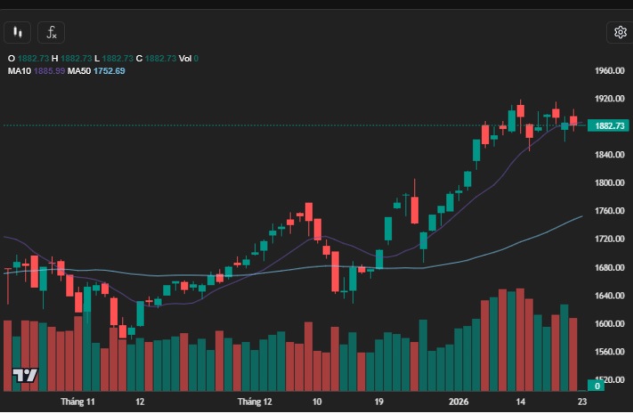 Chiến lược giao dịch 23/1/2026: VN-Index đóng cửa vi phạm đường MA5 (1.885 điểm)