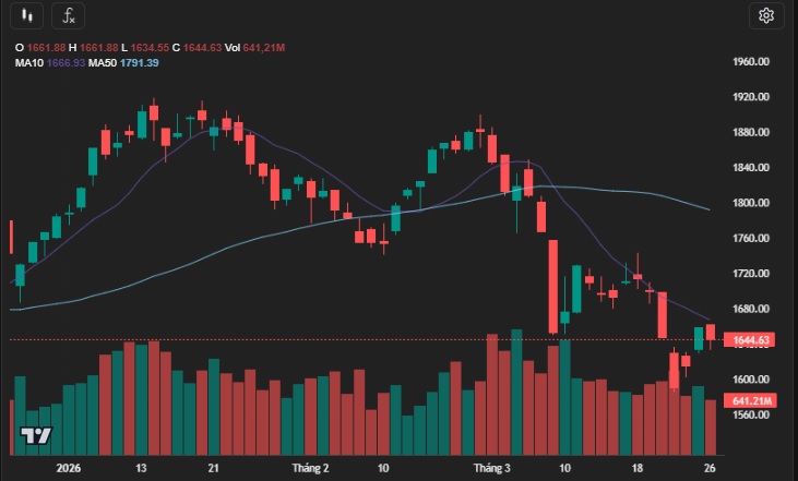 Tín hiệu hiện tại cho thấy trạng thái cung cầu đang ở mức cân bằng. Do đó, xác suất cho hai kịch bản tăng và giảm trong phiên 27/03 là tương đương nhau. Trong trường hợp điều chỉnh, vùng 1.600–1.610 điểm sẽ đóng vai trò hỗ trợ, trong khi khu vực 1.660–1.670 điểm là kháng cự nếu hoạt động tăng giá xuất hiện. Dựa trên diễn biến hiện tại, nhóm Điện, Xây dựng và Bảo hiểm nhiều khả năng tiếp tục duy trì diễn biến tích cực. Trong khi đó, nhóm Tiêu dùng, Chứng khoán và Bất động sản có thể thu hút lực mua giá thấp nếu VN-Index lùi về vùng hỗ trợ.