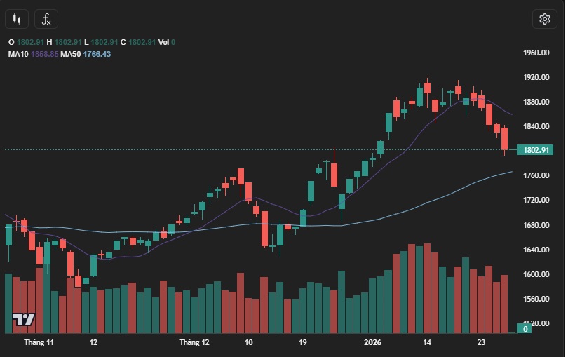 Chiến lược giao dịch 29/1/2026: khả năng vùng 1.800 (+/-20) điểm là đáy ngắn hạn trên VN-Index