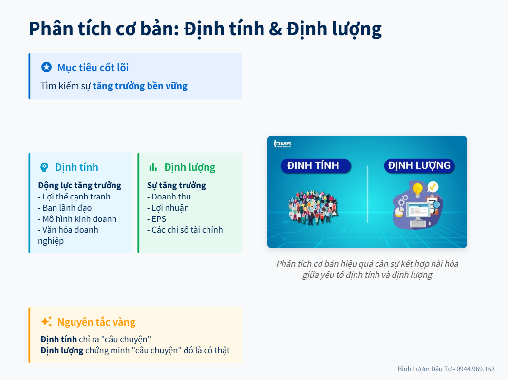 - Các yếu tố trọng tâm trong phương pháp này bao gồm phân tích tình hình doanh nghiệp qua báo cáo tài chính, khả năng phát triển và sinh lời qua doanh thu, lợi nhuận cũng như đánh giá năng lực, phẩm chất của ban lãnh đạo,…|