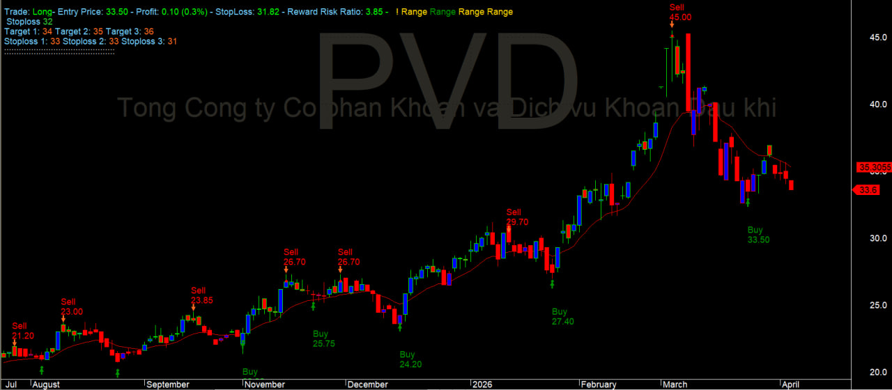 Mục tiêu: Nhắm tới vùng 45.0 (Đỉnh cũ) khi kết quả kinh doanh Quý 1/2026 được công bố, phản ánh trọn vẹn mức giá thuê giàn khoan mới.