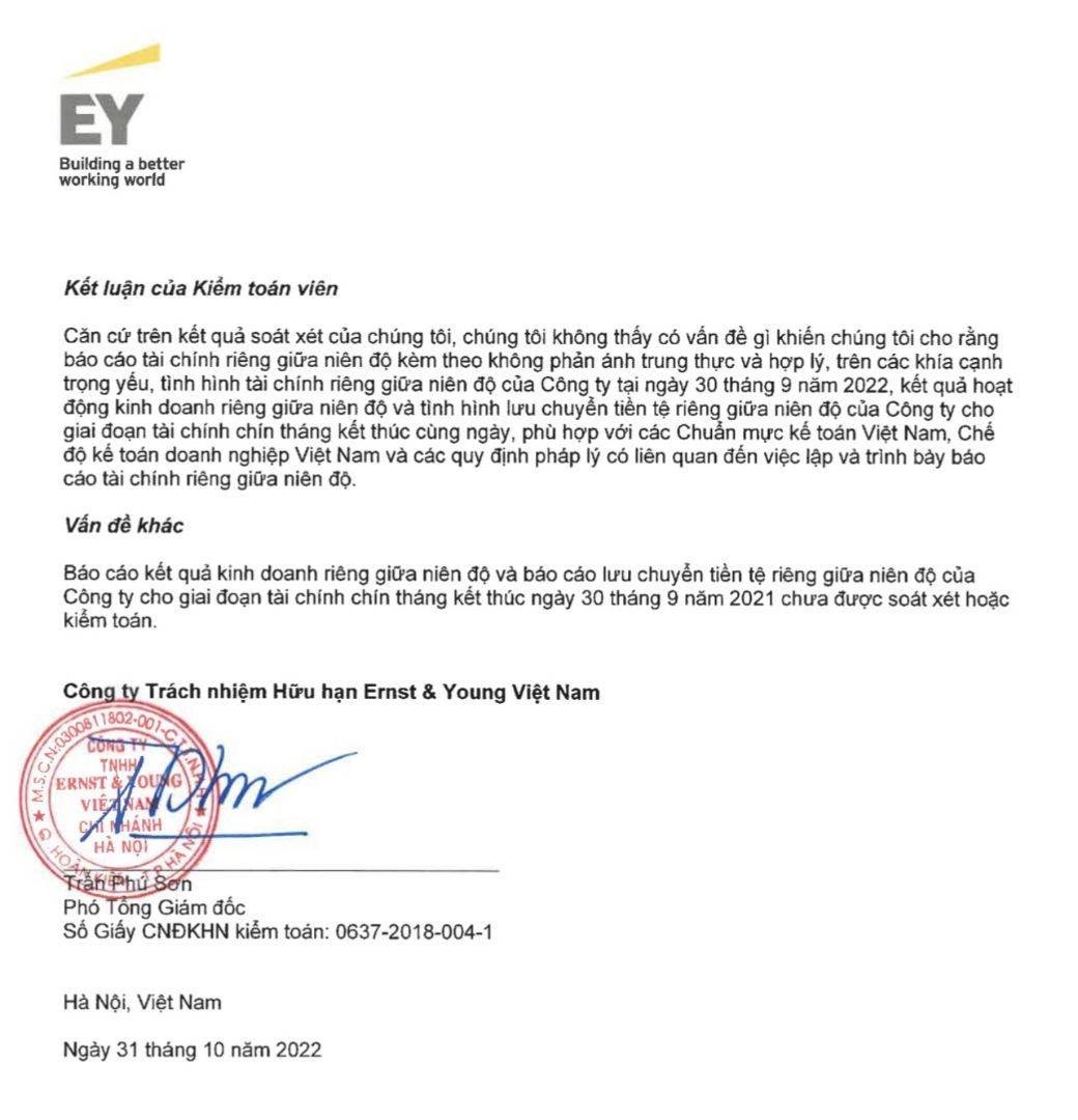 E&Y cũng lưu ý rằng bút toán ban đầu của giao dịch chuyển nhượng này đang được xác định tạm thời trên báo cáo tài chính hợp nhất bán niên dựa trên giá trị sổ sách tài sản thuần của công ty tại ngày mua. Việc hoàn tất kế toán ban đầu sẽ được thực hiện trong 12 tháng kể từ ngày mua.