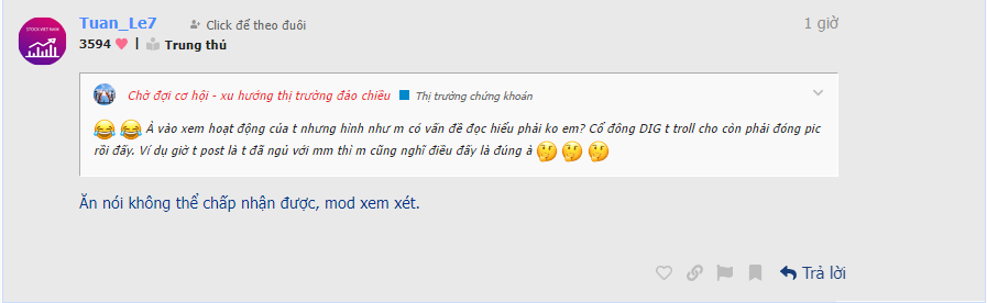 Uptrend tôi vẫn khen DIG, downtrend là tôi trở mặt ngay. Tiền mới là vấn đề quan trọng, còn cổ phiếu chỉ là công cụ kiếm tiền thôi.