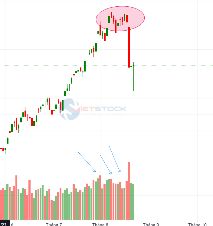 Thị trường đầy đủ các yếu tố rủi ro trong ngắn hạn đó là mẫu hình 2 đỉnh, xuất hiện những phiên PP, có dấu hiệu kéo rướn …