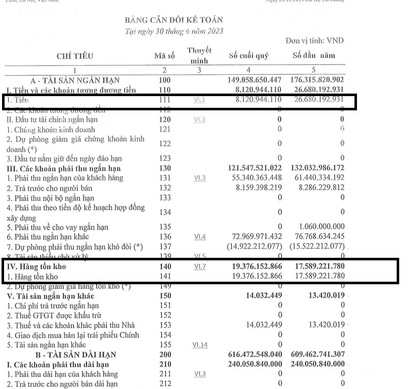 Tài sản tiền giảm, hàng tồn kho không tăng nhiều
