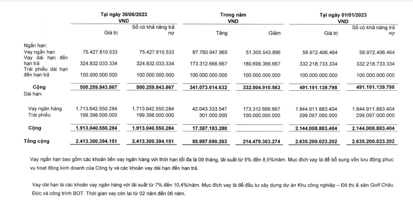 Doanh nghiệp nợ vay tương đối lớn tầm 1.9k tỷ đây là tiền vay để phục vụ giải phóng mặt bằng KCN Châu Đức.