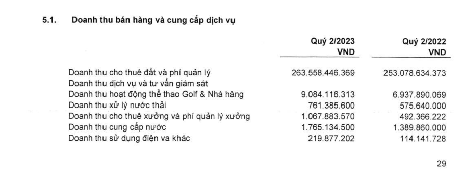 Bóc tác ra doanh thu vẫn chủ yếu mang lại từ cho thuê KCN tầm 263 tỷ chiếm trên 90%