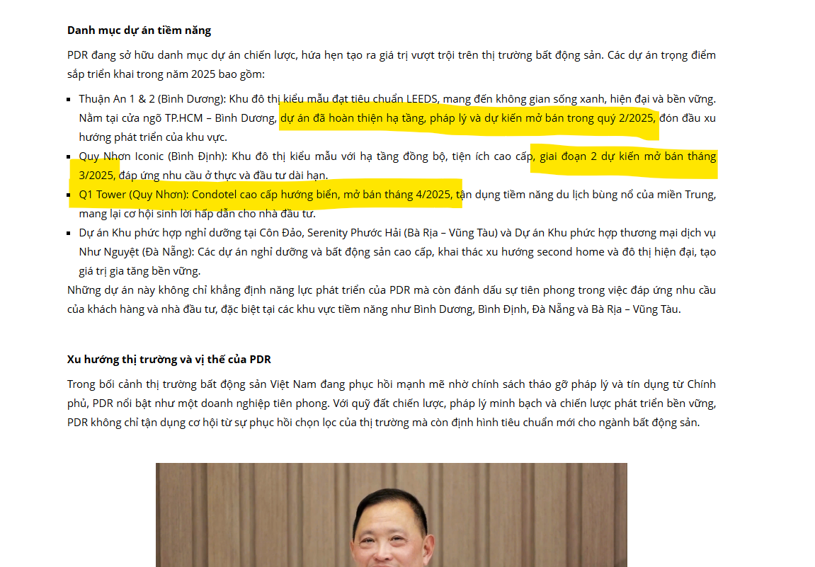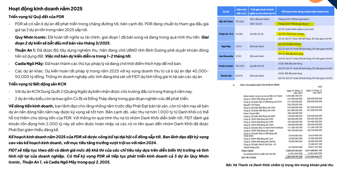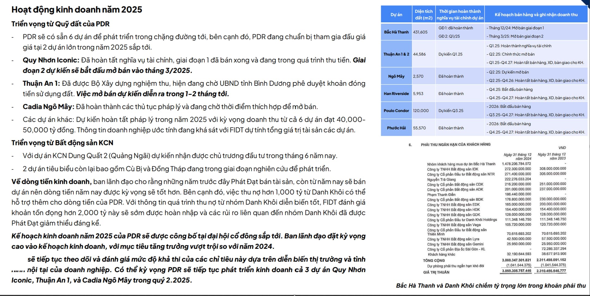 2025 thì PDR sẽ tiếp tục đếm đất xây nhà thu tiền chính ở Thuận An 1 2, Bắc Hà Thanh, và 1 tòa condotel Cadia Ngô Mây (tầm 2300 tỷ) và 1 tòa KS thu tiền đều.