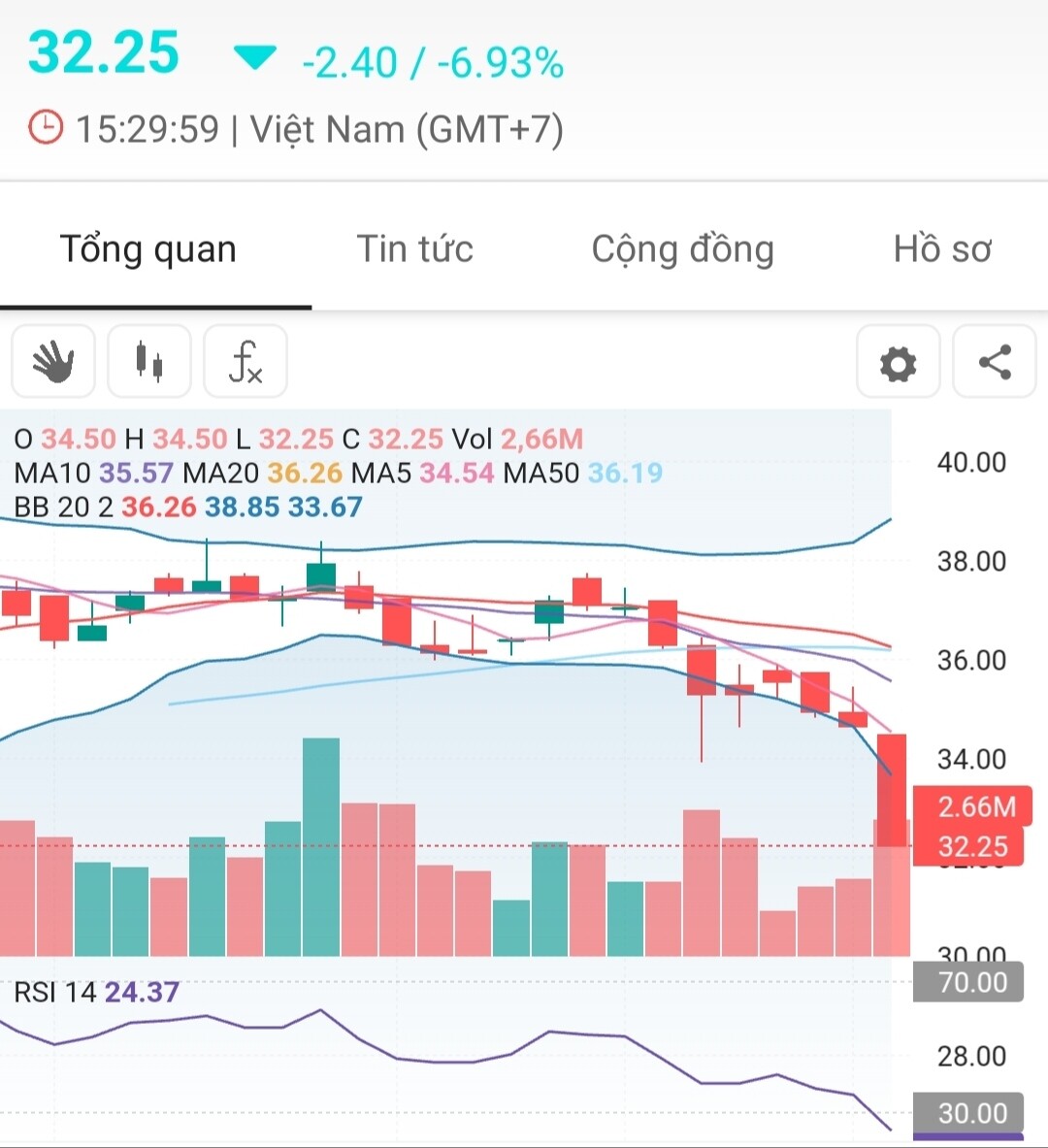 Thấy Rsi như Ceo là quá lắm rồi, nên múc sớm . Ai dè có khi 30. Thôi em giá vốn 35 ngủ đông vậy.