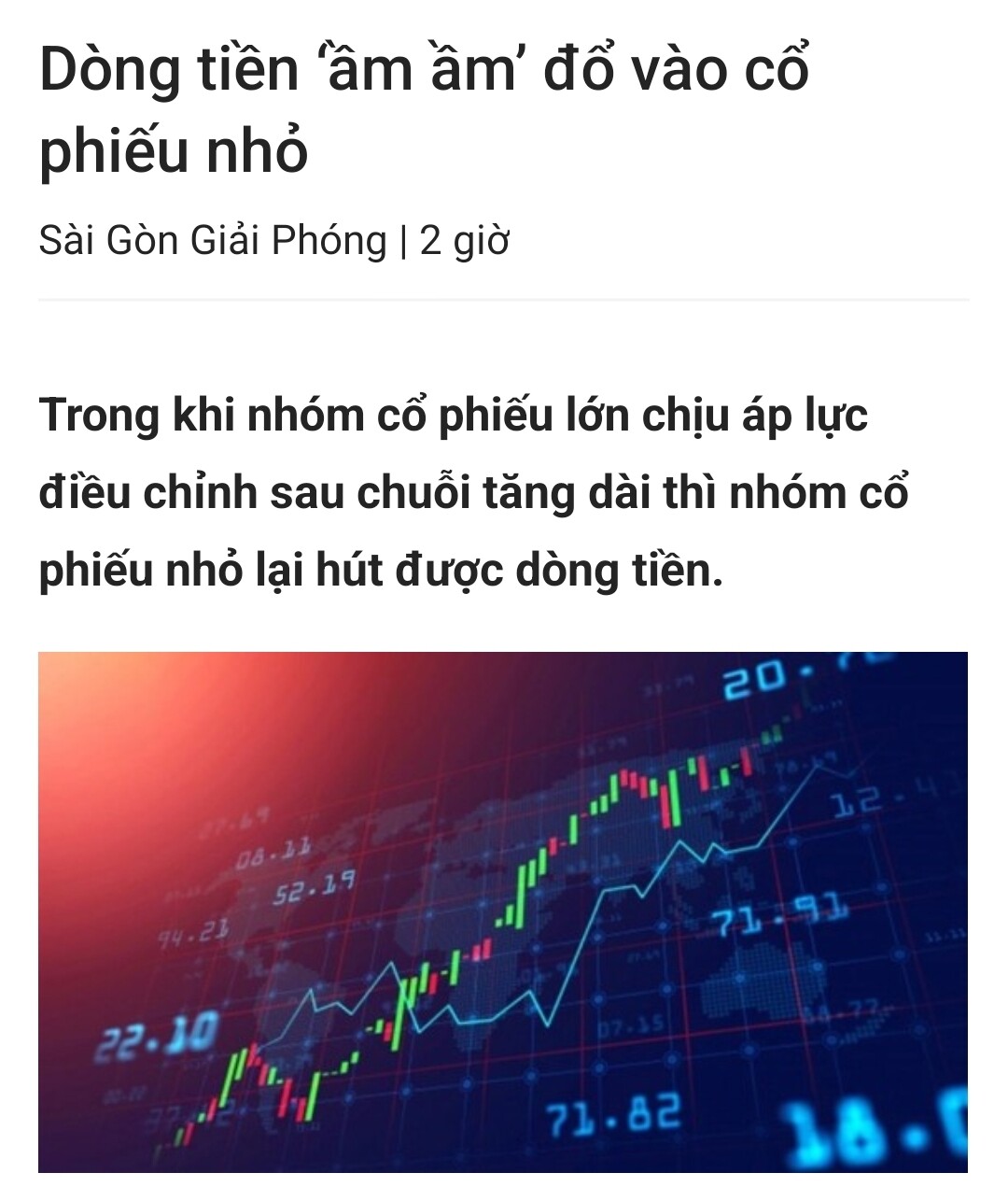 Confirmed là tiền có dịch chuyển sang cổ phiếu vừa và nhỏ. Nhưng em không kỳ vọng nó diễn ra quá 2 phiên.
