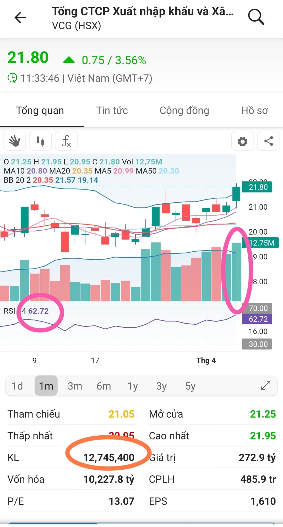Dòng ĐTC có VCG đã đáp ứng được kỳ vọng của em. Phiên chiều sẽ có võng xuống nhưng chắc không đáng kể. Ai thích cứ lên tàu lúc đó.