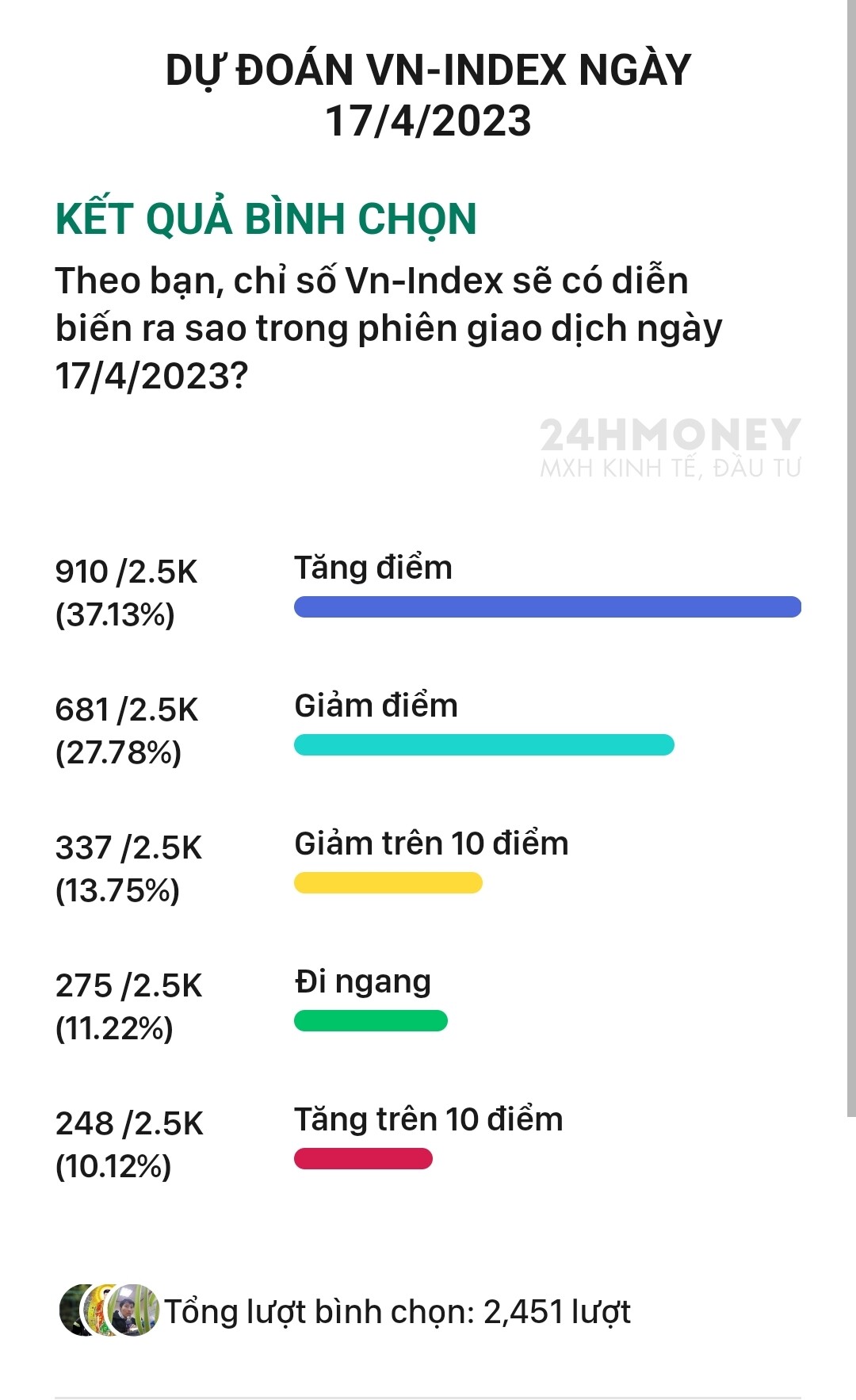 Tham khảo kết quả tâm lý của 2,500 người có quan tâm đến cổ phiếu. Có vẻ số người lạc quan không ít.