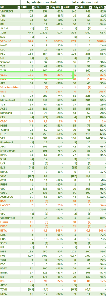 Để ý VCBS đó bác. Đợt này chuẩn nhiều lần em thấy rõ. Quý 1, lợi nhuận cũng rất OK so với các CTY CK khác.