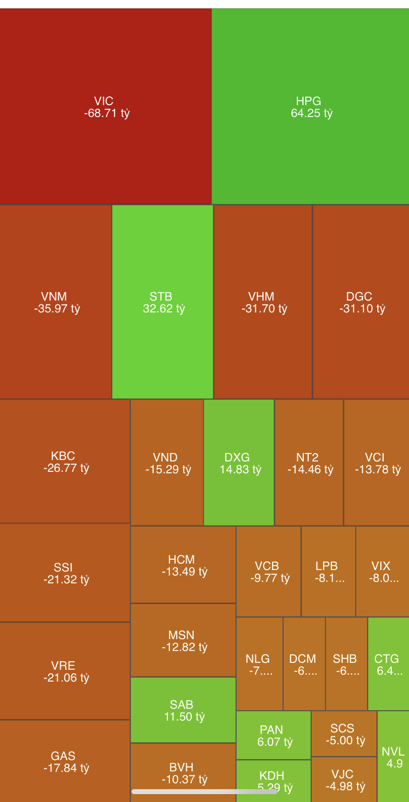 Nn nay bán đỏ trụ kéo chỉ số VNI xuống, cp riêng lẻ ko giảm bao nhiêu, nn ngừng bán thì VNI sẽ xanh ngay