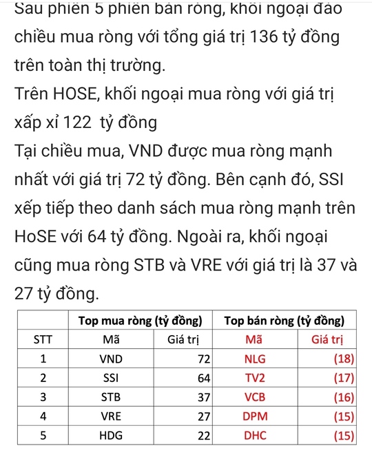 Khối ngoại mua ròng VND và SSI như một tín hiệu vượt ngưỡng.