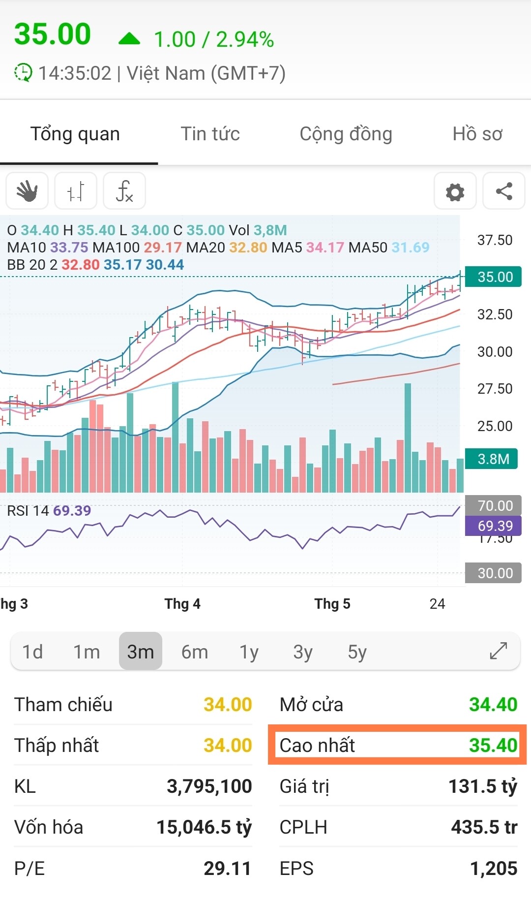 Đã chạm 35.35 như anh phán.