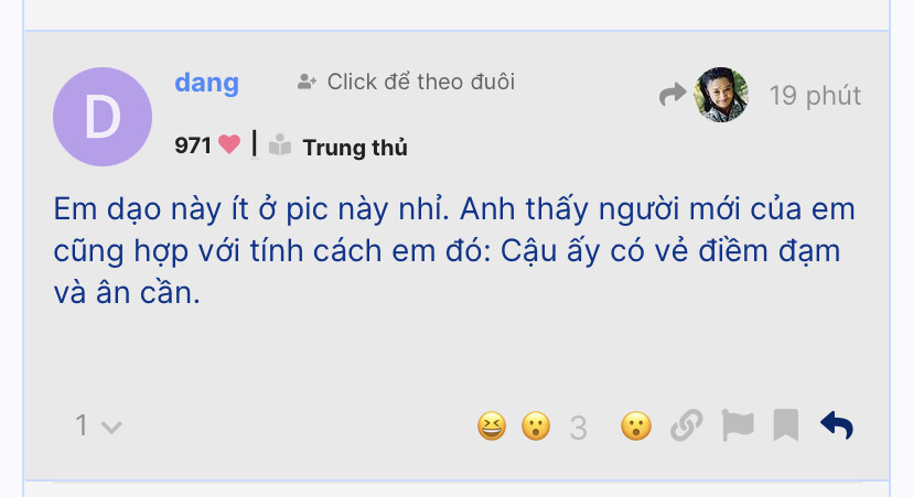 @Nguoituyetquoc có người khen anh này, nhưng em ko phải “người mới” của anh Tuyết, câu này ko đúng nha bác @dang, em đang tầm sư học đạo thôi