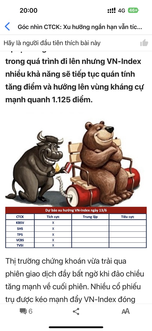Điều đặc biệt là hôm nay VNI đóng cửa ở mức cao nhất từ khi vượt khỏi 1,080 tại mức 1,116 điểm. Điều này dễ dẫn đến kịch bản rất đẹp cho phiên mai khi rất dễ dàng vượt 1,120 và chắc chắn những công ty CK sẽ có nhận định tích cực.