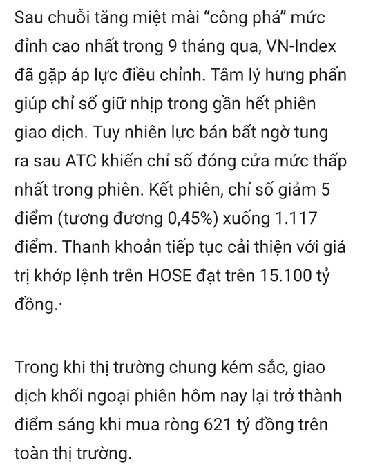 e thấy tích cực thì nó giảm nhiều điểm thế này còn tốt hơn, nó giữ xanh còn đáng quan ngại hơn.