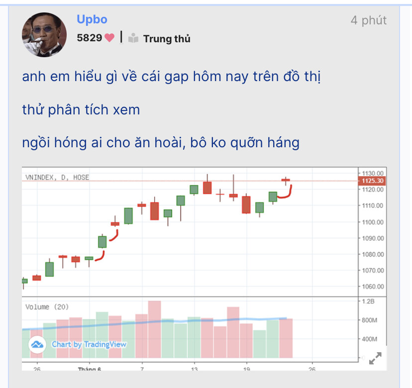 VNI đang lấp cái gap số 3 mới tạo hôm qua.