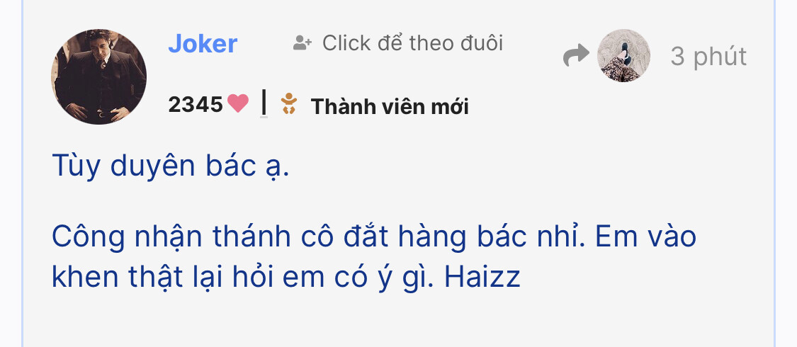 Công nhận thánh cô đắt hàng bác nhỉ. Em vào khen thật lại hỏi em có ý gì. Haizz