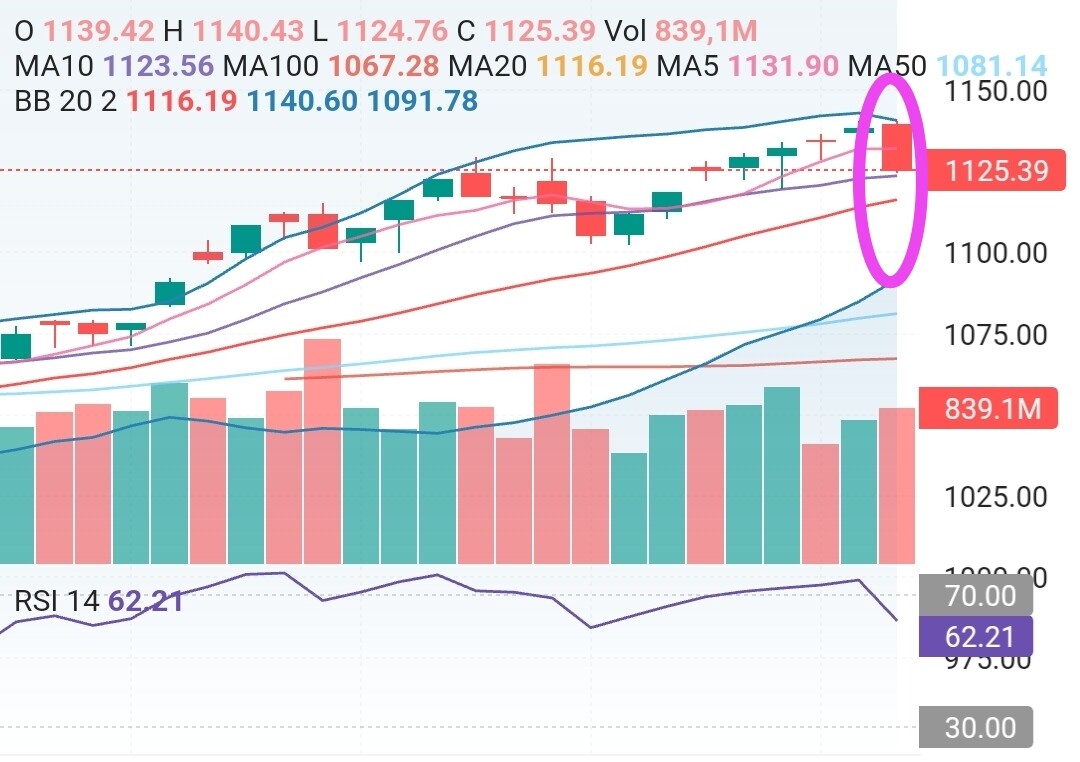 - Một cây nến đỏ siêu dài, dài đến vùng 1,125 mà anh đã hơi lo lắng trong phiên sáng.