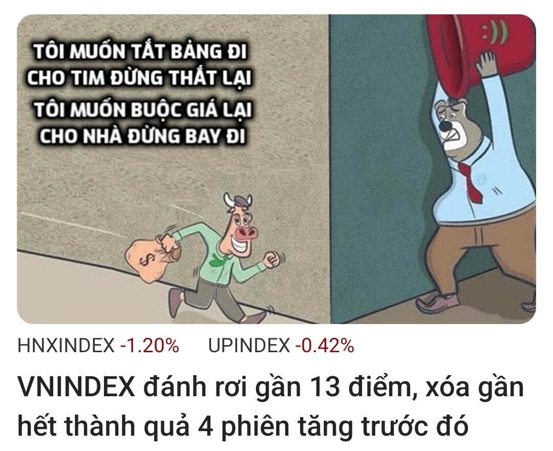 VNI sẽ không chết liền đâu. Đó là điều anh chắc chắn. Nhưng anh cần quan sát phiên mai để xem trend tăng có bị phá vỡ không.