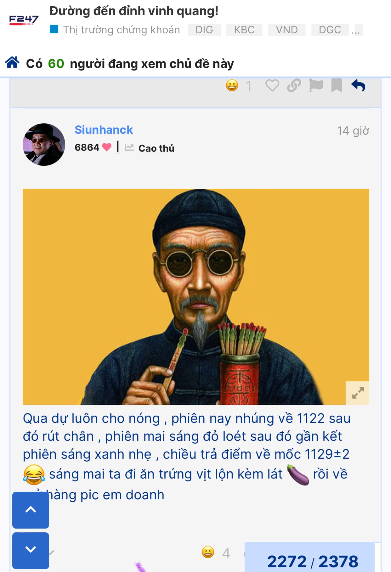 Lúc nhún về 1,122 em có thầm nhủ, bác Siu quá chuẩn rồi. Nhưng đến khi nó kéo vượt 1,130 mà không thấy hồi là em đã thấy kỳ lạ. Rồi thôi bỏ.