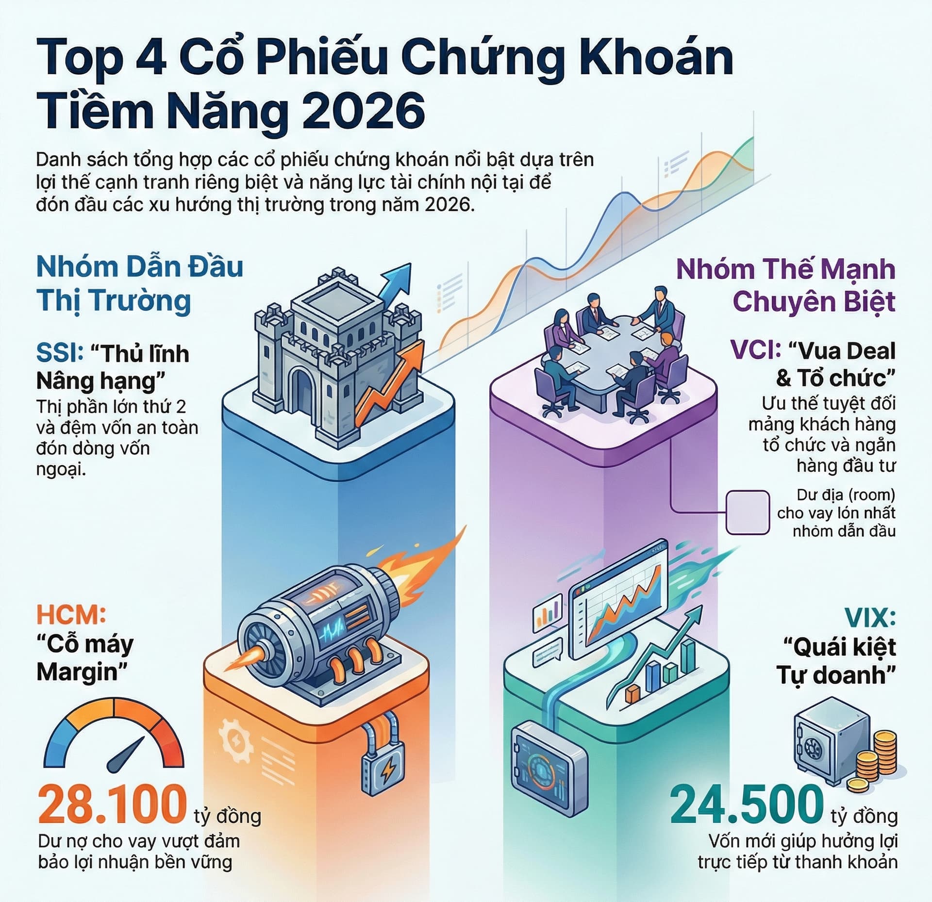 Góc nhìn của bạn thì sao? Giữa sự bền vững của SSI/HCM, tính đột biến từ các siêu thương vụ của VCI, hay sự quyết liệt của VIX, đâu là lựa chọn của bạn? Và bạn đánh giá thế nào về triển vọng của các “sàn số” trong việc thúc đẩy nhóm chứng khoán bứt phá?