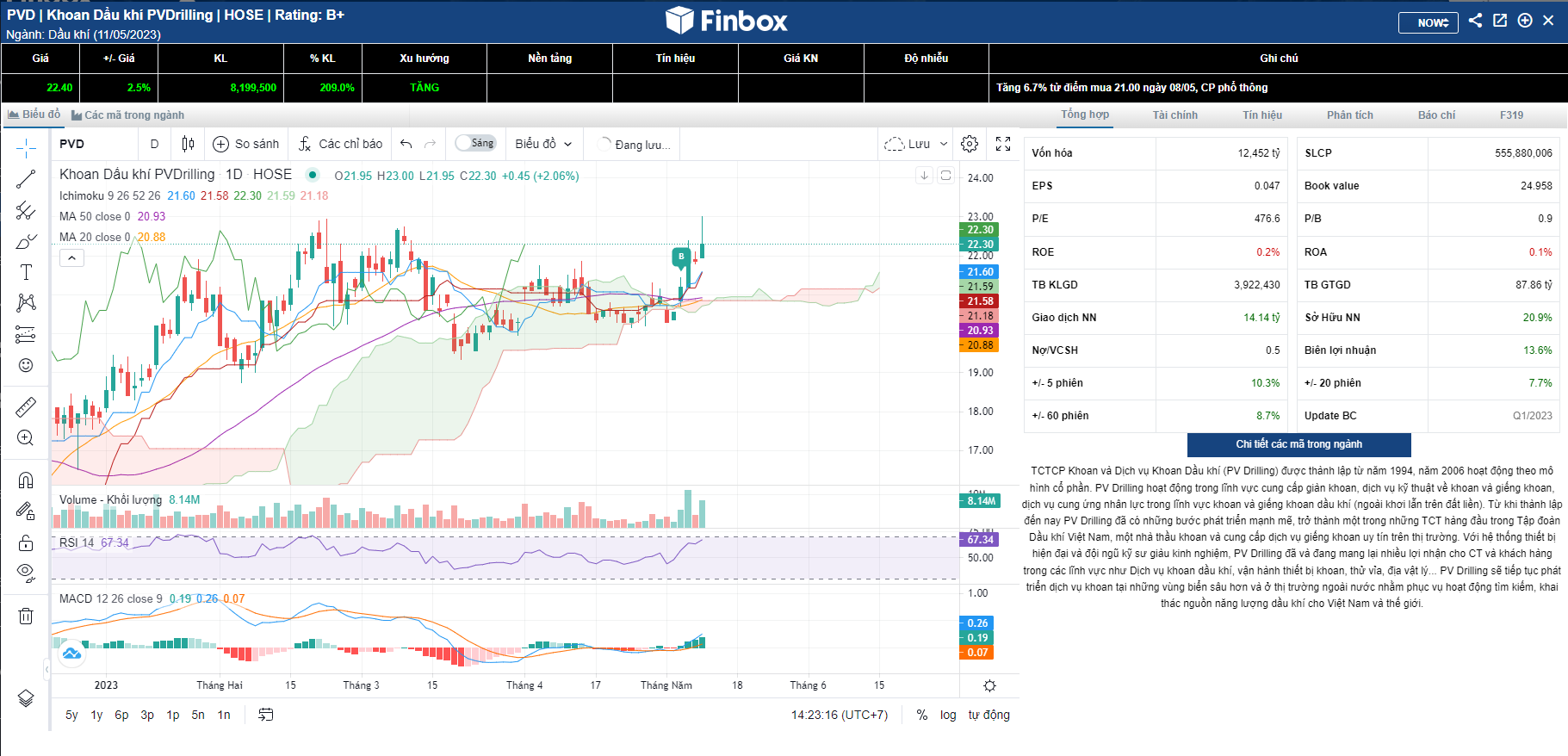 Vì có độ trễ trong ký hợp đồng nên năm 2022 PVD chỉ ký với giá quanh 70.000 usd nhưng các hợp đồng ký mới trong thời gian tới sẽ tăng đáng kể và khoảng chênh lệch này ghi thẳng vào lợi nhuận của doanh nghiệp. Thêm điểm chú ý là PVD đã ghi nhận trích lập mạnh tay để cho năm 2022 xấu luôn 1 lần nên năm 2023 theo quan điểm cá nhân sẽ đạt lợi nhuận đột phá gần 500 tỷ, và năm 2024 có thể tiến đến mốc 1000 tỷ. Với dự phóng như trên thì đây là doanh nghiệp đang quay về chu kỳ vàng tăng trưởng