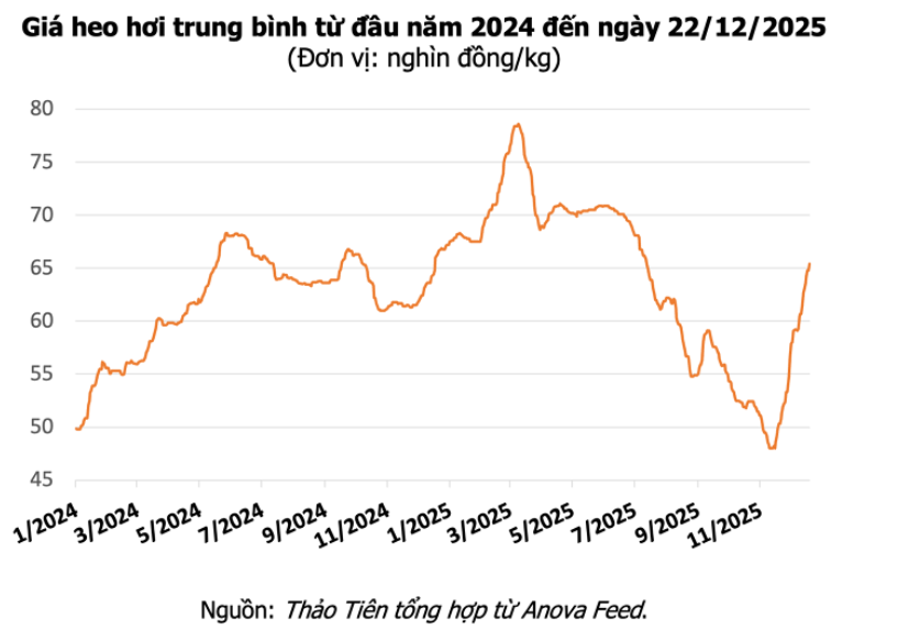 Với sự biến động này, giá heo hơi ở khu vực miền Bắc hiện dao động từ 67.000 - 70.000 đồng/kg. Trong đó, mức 70.000 đồng/kg được ghi nhận tại: Tuyên Quang, Cao Bằng, Thái Nguyên, Bắc Ninh, Hà Nội, Hải Phòng và Hưng Yên.