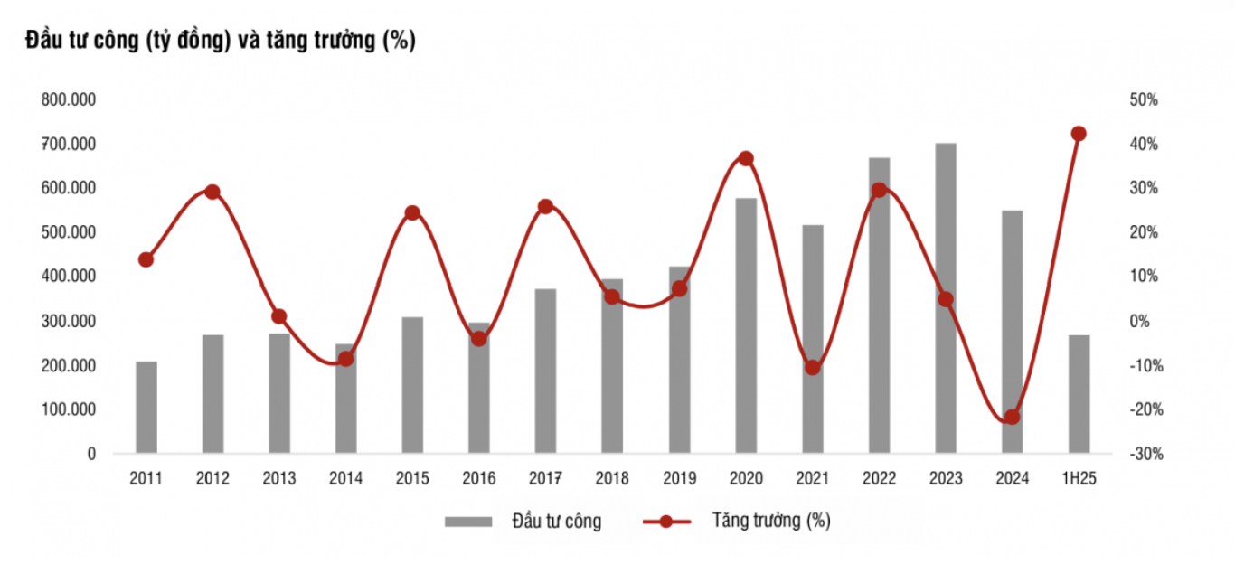 → Điều này cho thấy: dòng tiền đầu tư công không còn “nằm trên giấy”, mà đang thực sự chảy vào nền kinh tế, kích hoạt hàng loạt công trình.