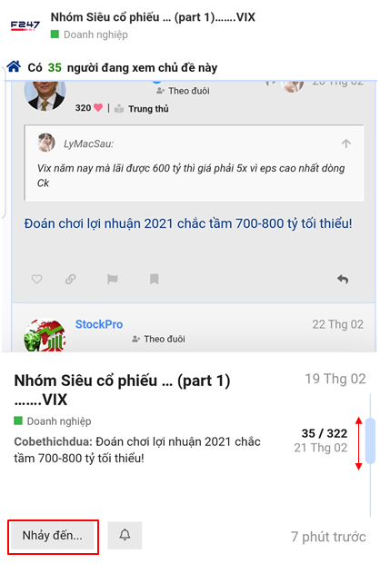 Ở giao diện mobile thì bạn có thể nhấp vào số trang/tổng số bình luận ở góc dưới bên phải màn hình, sau đó kéo thanh trượt hoặc chọn Nhảy đến số trang/số bình luận mình cần xem.