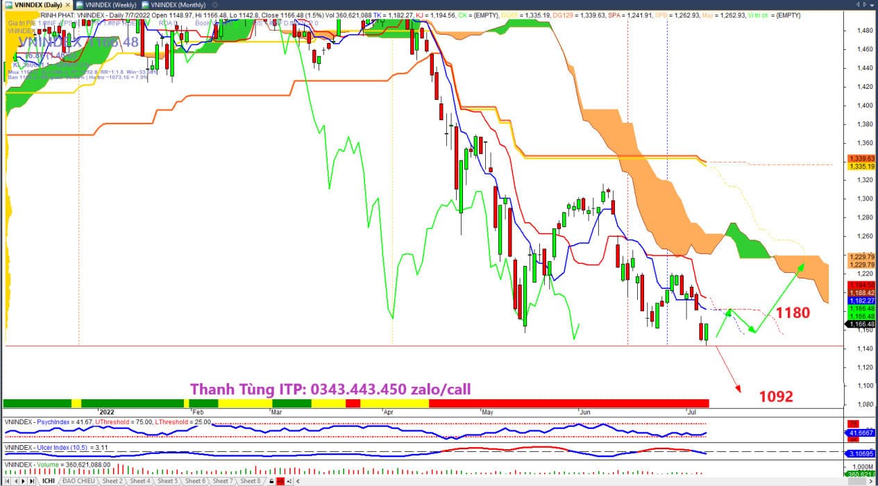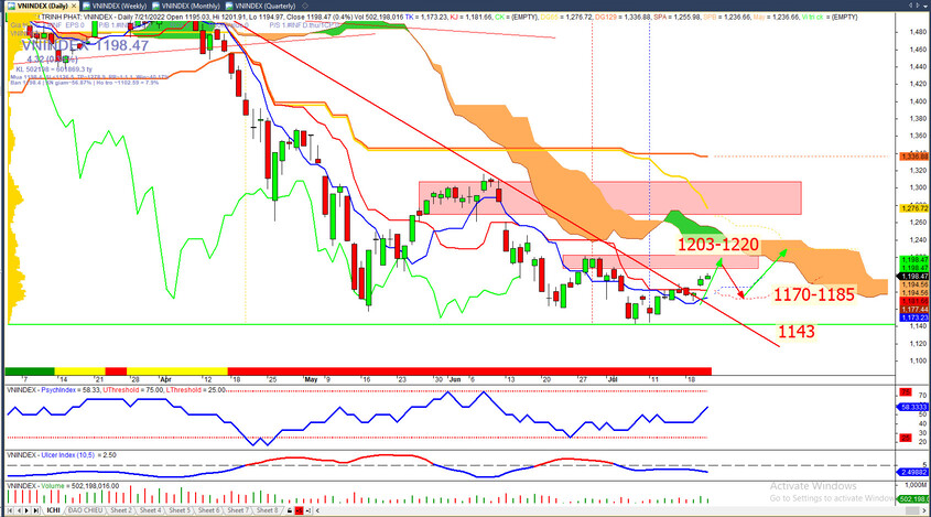 Với diễn biến cơ hội là sáng nhưng cảnh giác với diễn biến thị trường chứng khoán thế giới trong ngắn hạn biến động xấu, VNINDEX mới bắt đầu phục hồi cản nhẹ ngắn hạn 1180 chưa rõ ràng về sự phục hồi thuyết phục để tạo đáy đi lên. Nhịp hiện tại liều có thể phân bổ tỷ trọng thấp vùng hiện tại, rủi ro quay đầu cắt lỗ quyết liệt. Đối với anh chị thận trọng có thể chờ nhịp VNINDEX breakout vượt hẳn 1180 tham gia tỷ trong không quá 50% đánh nhịp sóng hồi trong ngắn hạn.